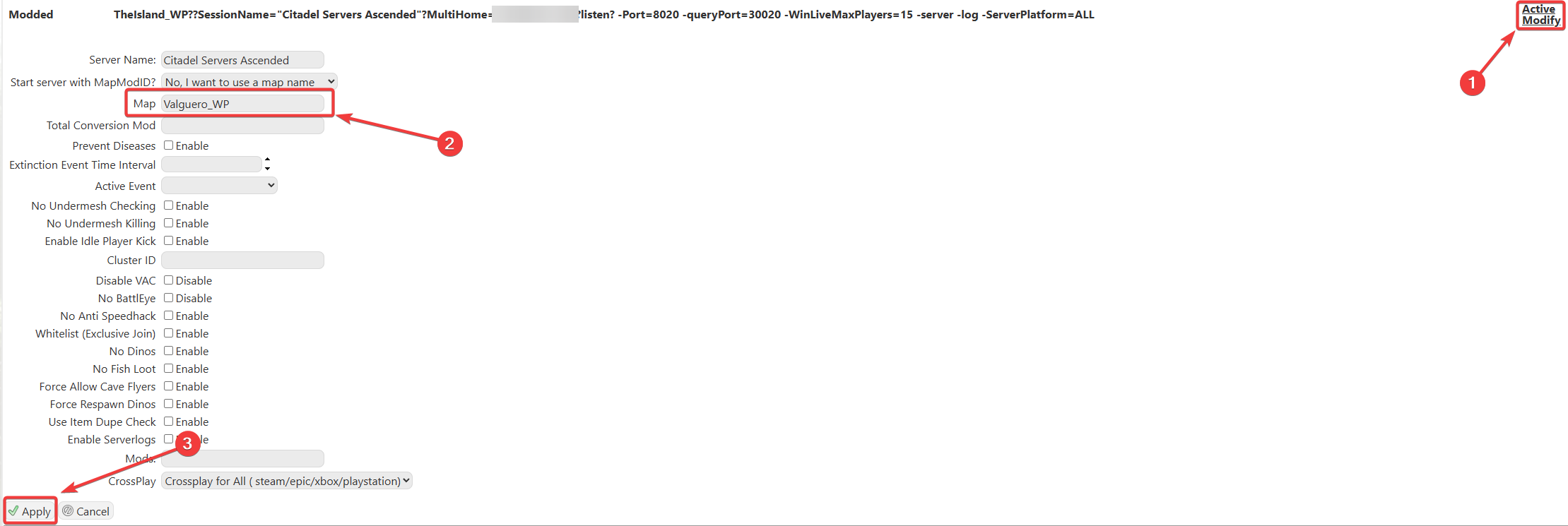 This guide provides instructions on how to change the map on your ARK: Survival Ascended server to Valguero using the Citadel Servers control panel.