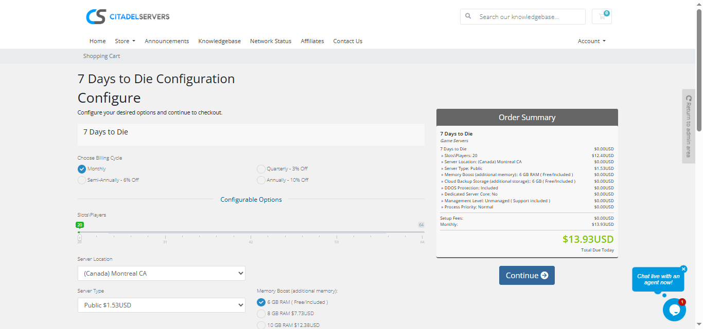 1. Go to the 7 Days to Die hosting page.