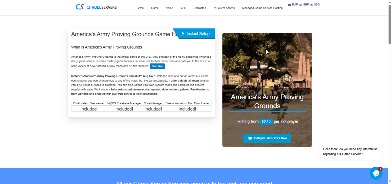 Hosting America’s Army: Proving Grounds with Citadel Servers gives you the professional-grade stability and control needed for competitive play. Whether you’re running a private training server or an open community arena, we provide the power and flexibility to keep your matches smooth and fair.