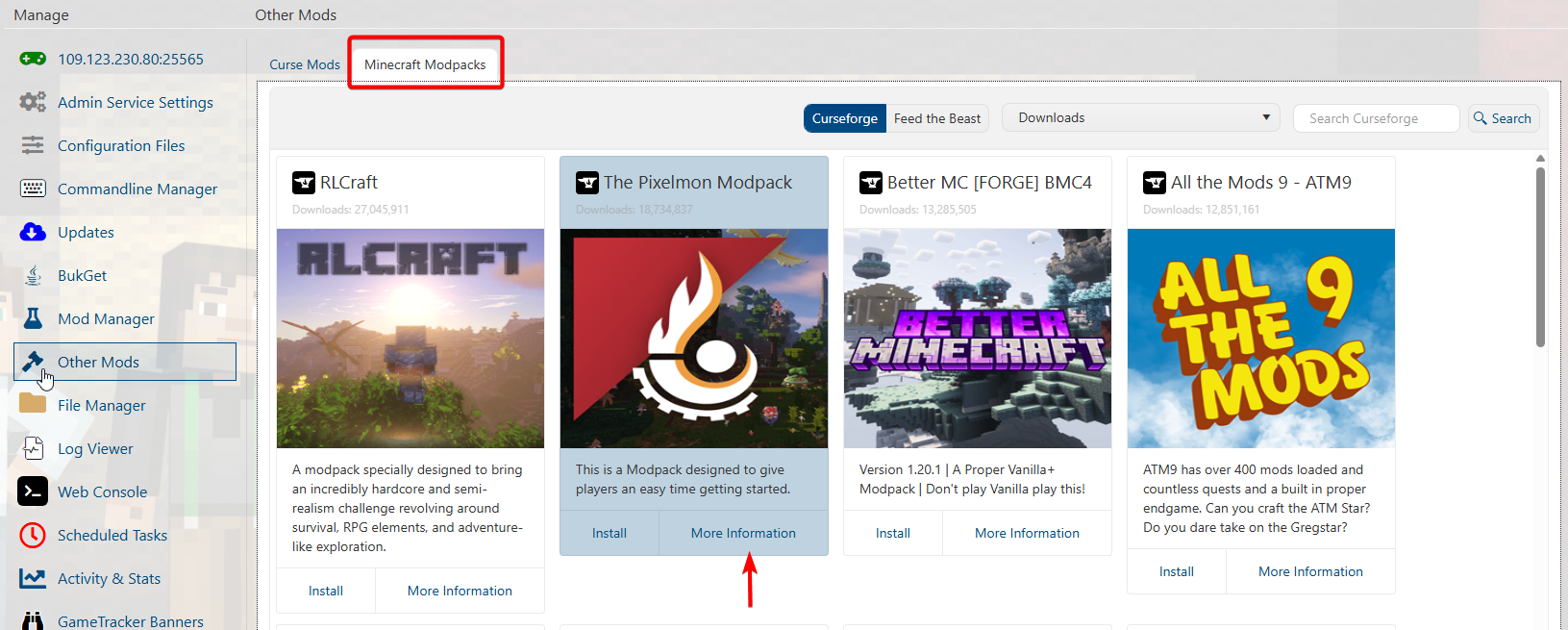 2. Click the "Other Mods" tab, select the "Minecraft Modpacks" section,