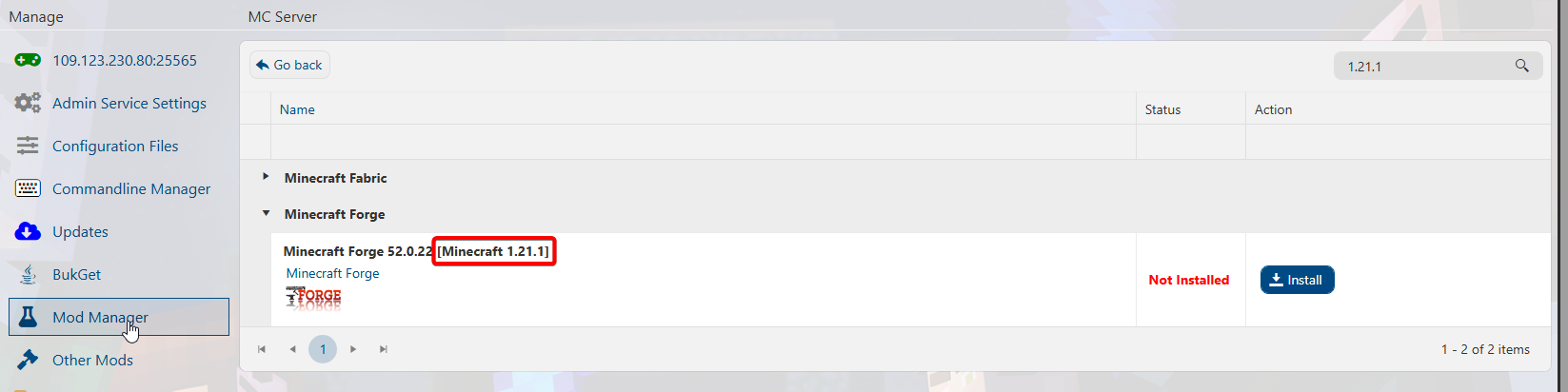 6. We can now move on to the Mod Loader, which is Forge. It is still in the Mod Manager tab,