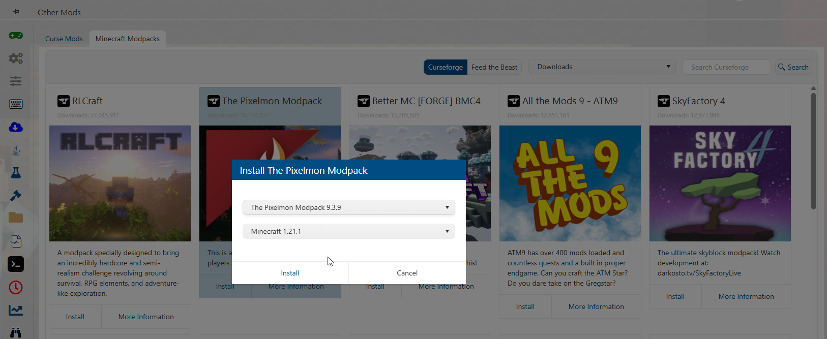 and search for the modpack. In this case, we will be installing "Pixelmon".