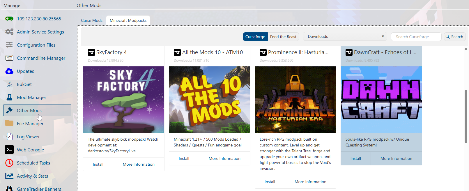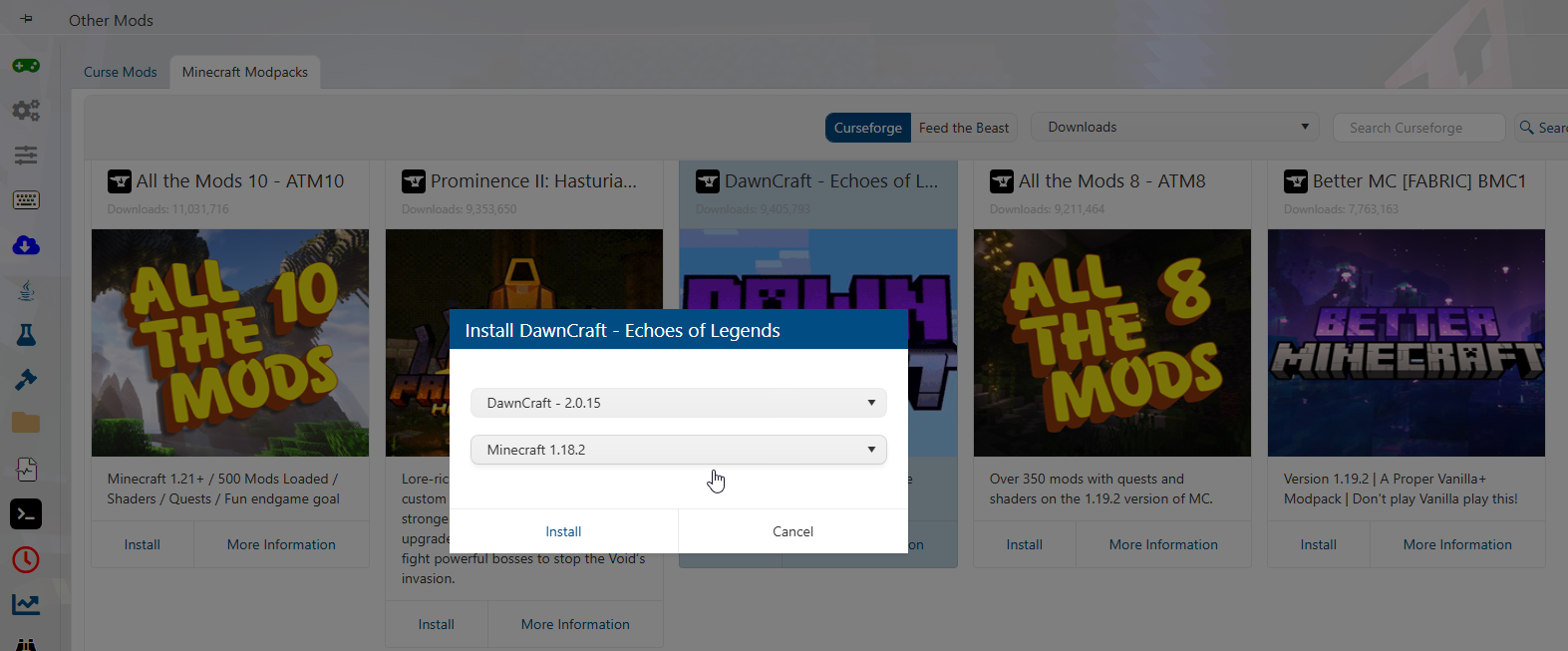 and search for the modpack. In this case, we will be installing "DawnCraft".